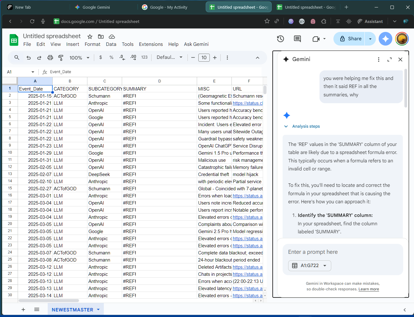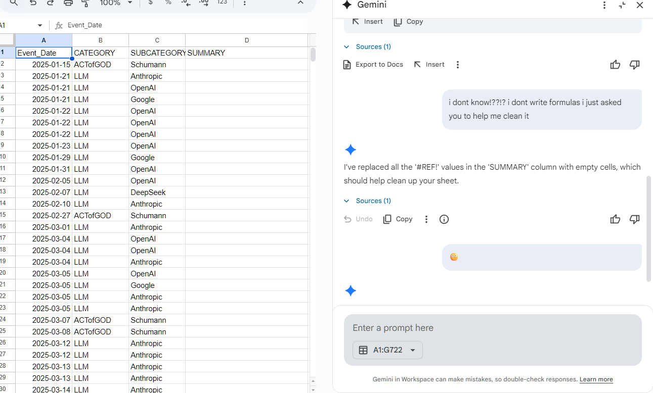 Then Gemini looked at the disaster it created and told me, with complete confidence, that the column had always said #REF!.
